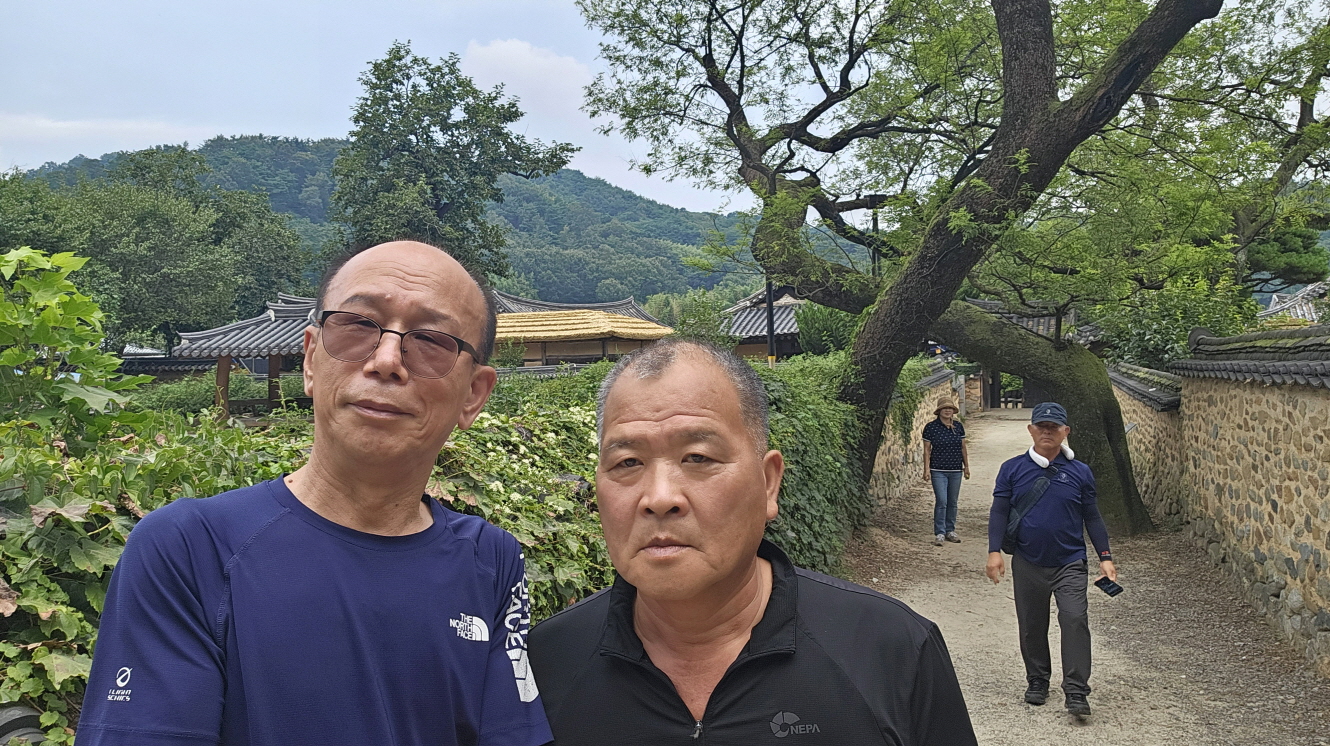 가는 길에 들르는 남사예담촌 부부회화나무를 배경으로