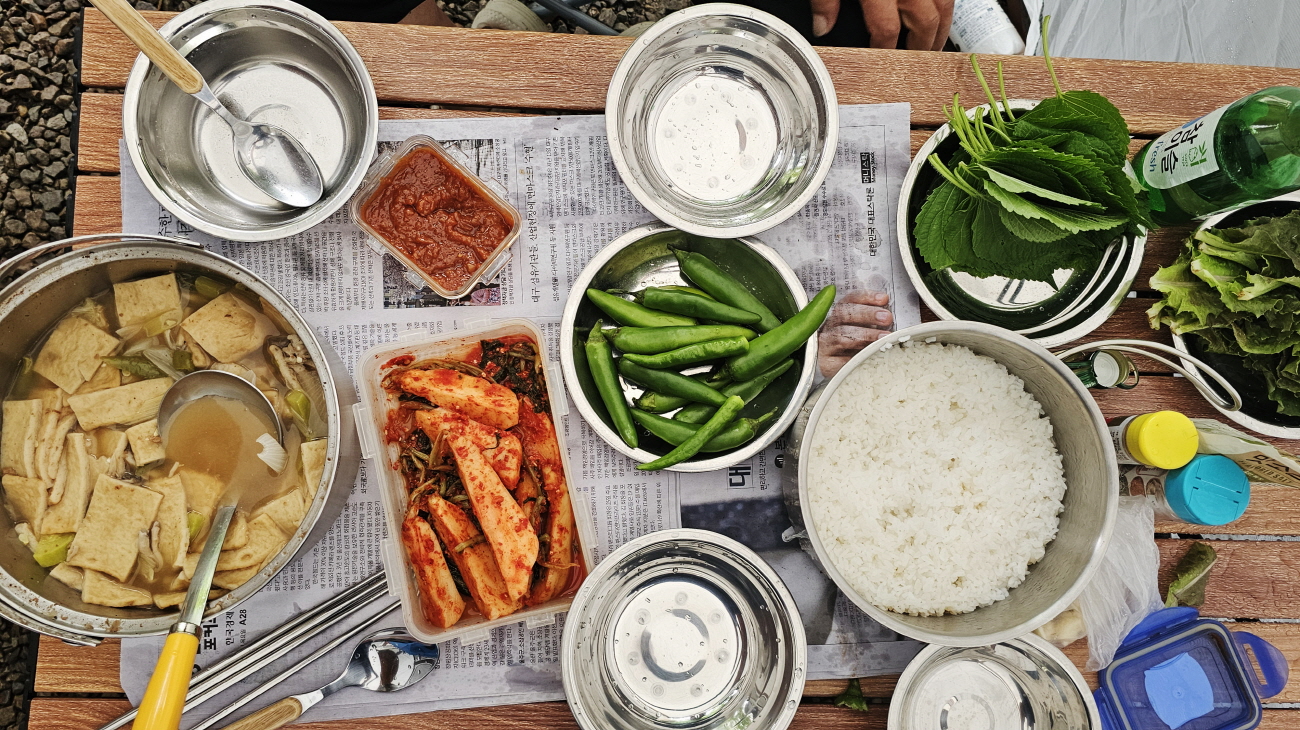 텐트설치를 마치고는 점심으로 삼계탕으로