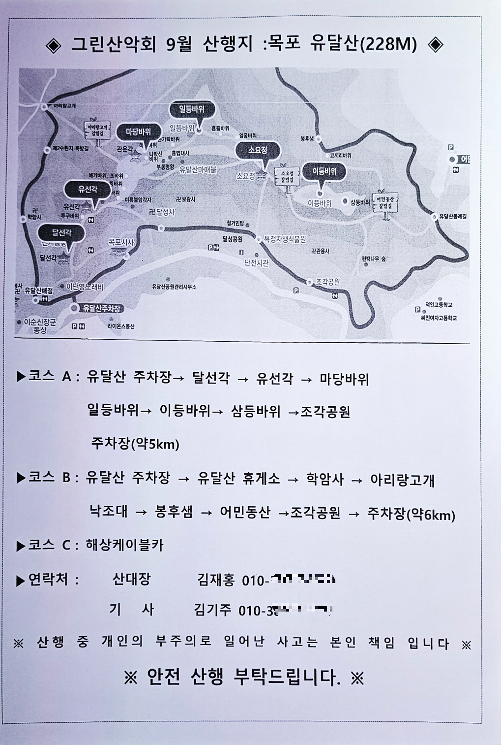 그린산악회 산행대장으로부터 문자 한 통을 받았다