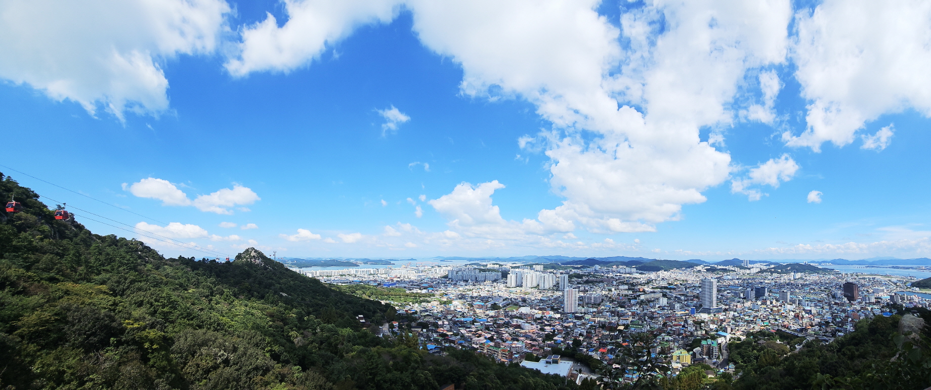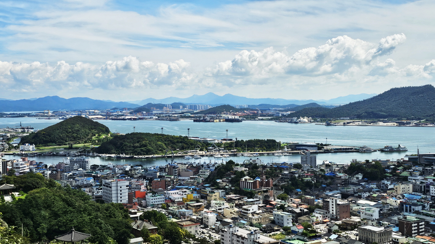 전망 데크에서 찍은 푸른 하늘이 아름다운 목포시내 전경