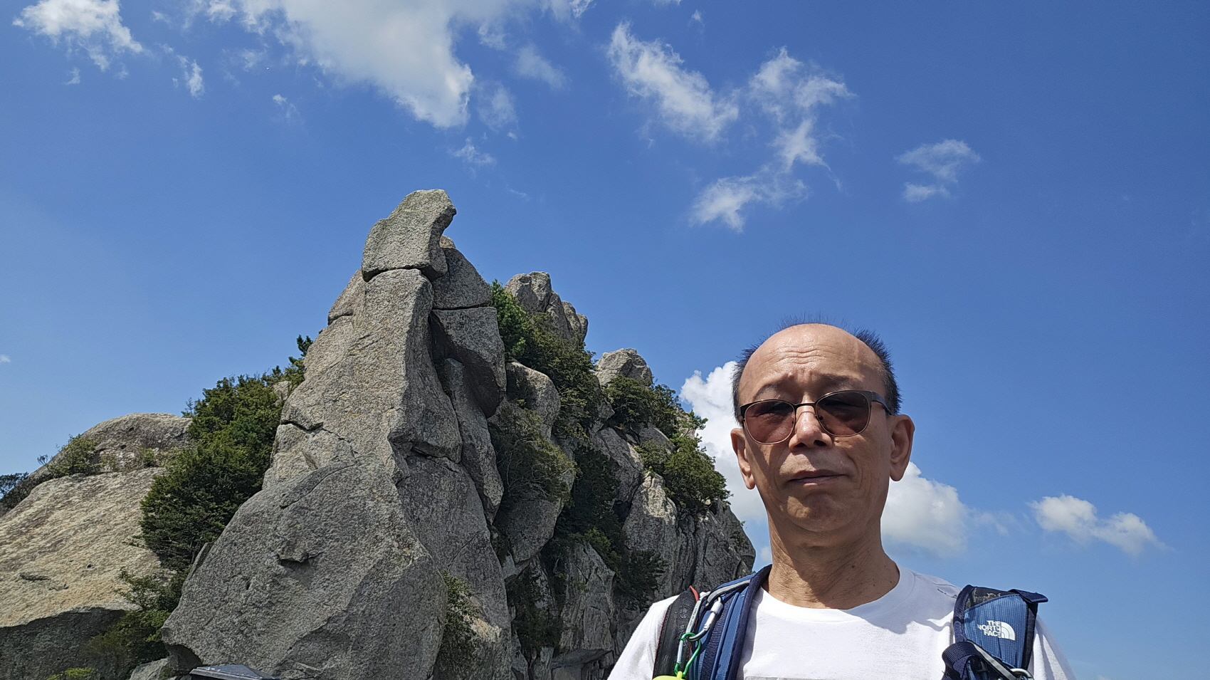 길목 바위에서 바라보는 조망이 멋진 곳에서 셀카를 찍고 여기서 뜻하지 않은 회원과 함께 동행을 하게 된다