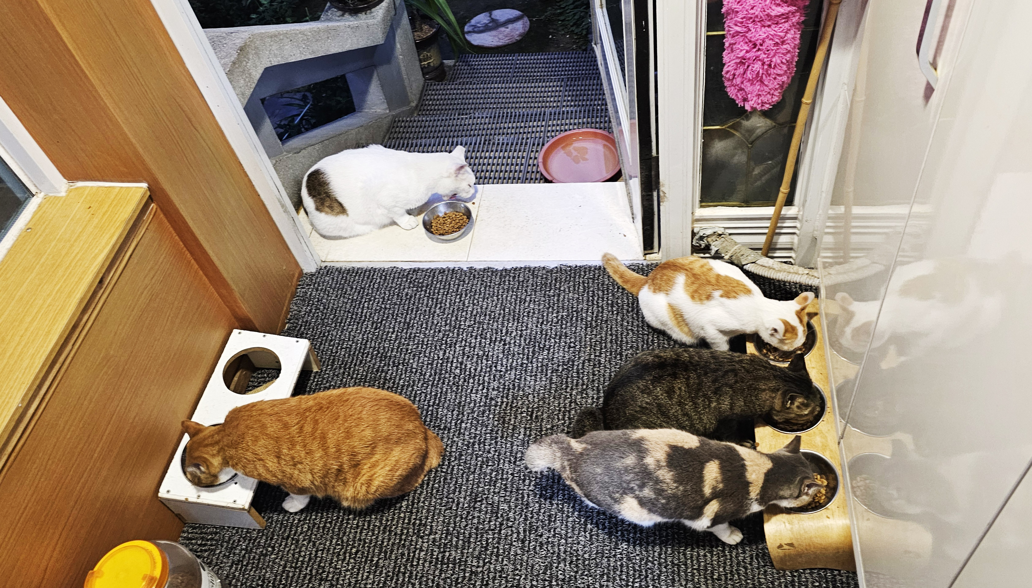 현관문을 열면 매일 새벽에 이렇게 5마리의 냥이들이 총알처럼 들어와서 아침을 먹는 모습을 보노라면 어느새 잠은 달아나 버리게 됩니다