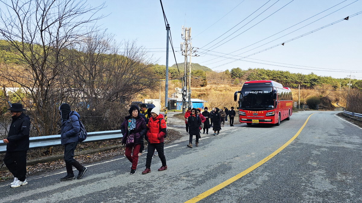 오전 11시 30분에 백발소 주차장에서 봇도랑길 트레킹을 시작합니다